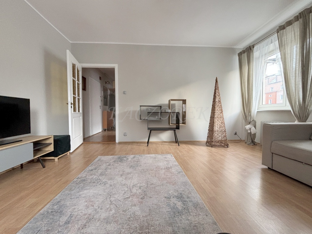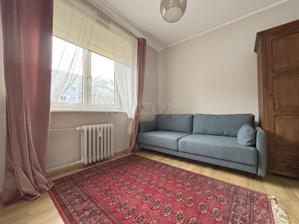 Mieszkanie jest jasne, dwustronne, ładnie doświetlone (okna wychodzą na południe i zachód), umeblowane, urządzone w jasnej, stonowanej kolorystyce.