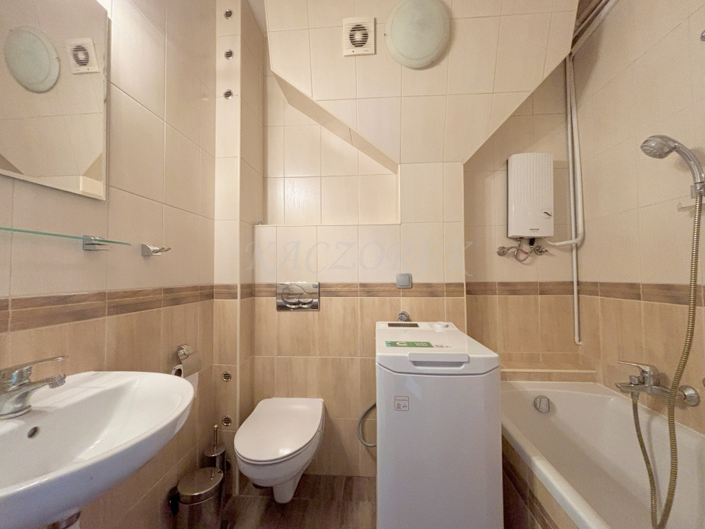 - łazienka z wanną, umywalką, WC i pralką